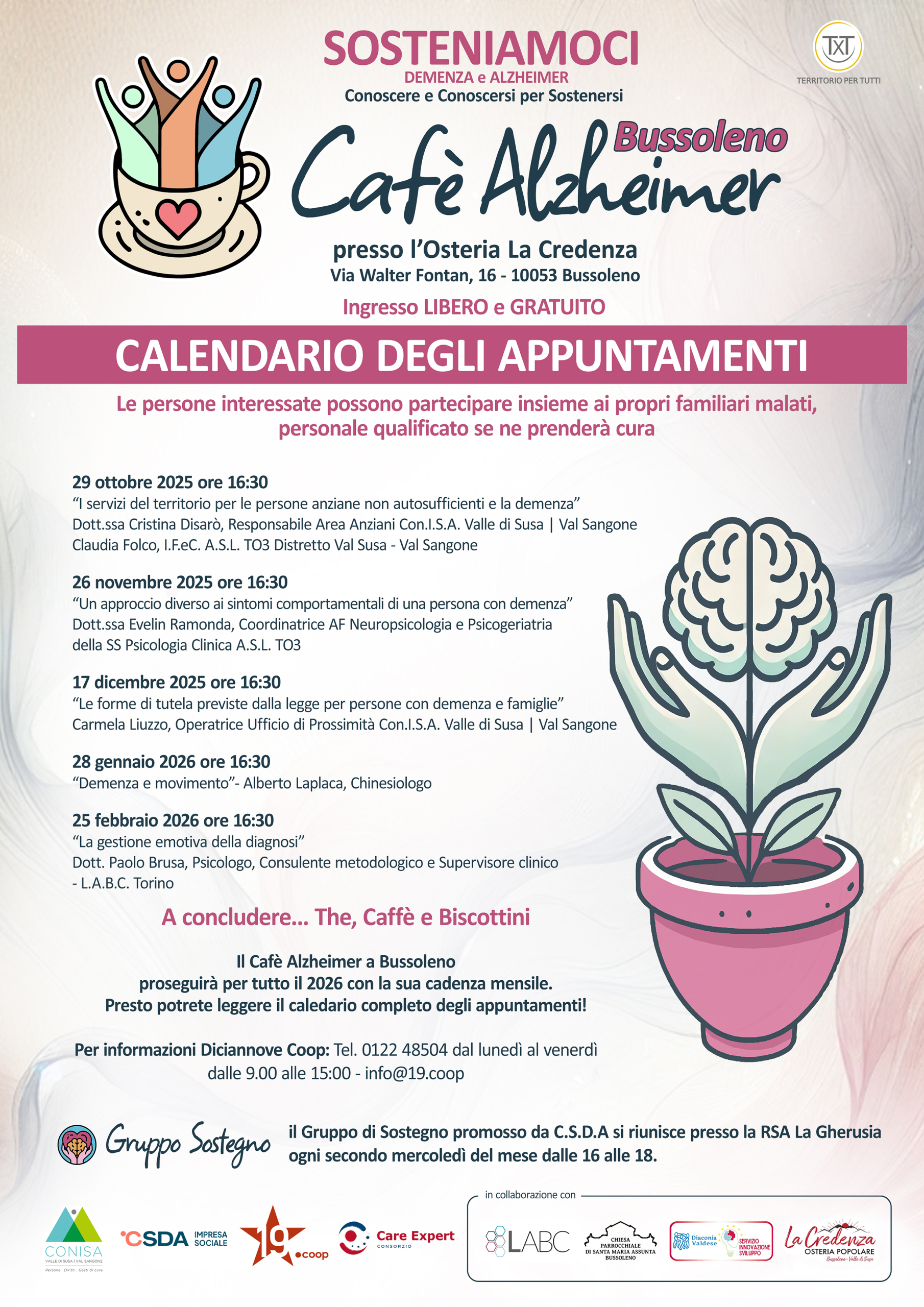 Cafè Alzheimer – Bussoleno – Calendario degli Appuntamenti